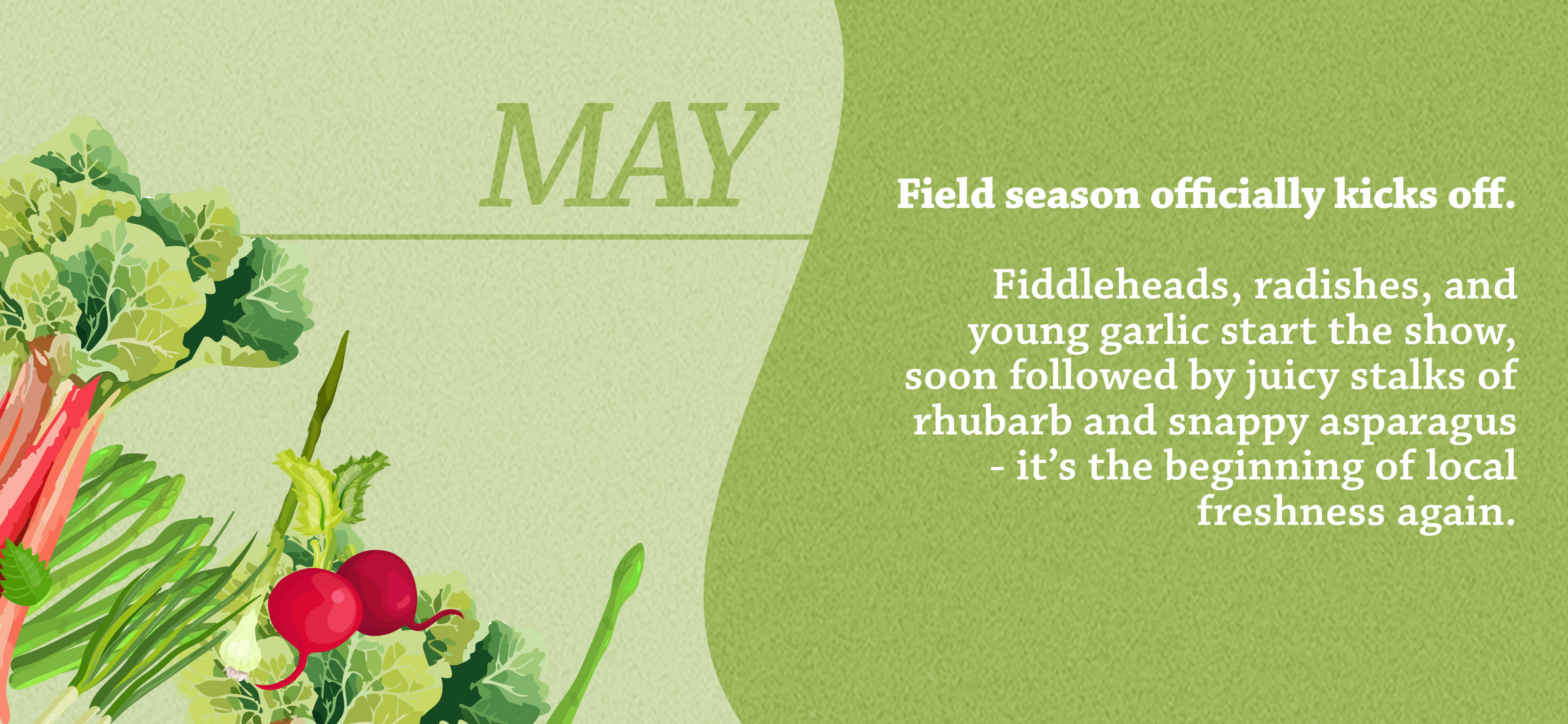 Our local field season doesn’t follow a straight line - it starts slow, builds gradually, and then suddenly everything bursts on the Marketplace all at once. With so many short windows, it’s easy to miss what’s here and what’s going! To help you stay on track (and make the most of what’s growing when), we pulled together a month-by-month breakdown just for our Lufavores.
